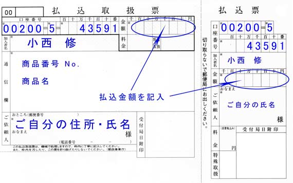 ◆郵便口座をお持ちの方は電信振替(相手の口座に、口座の預り金を振り替える送金方法)が便利です。