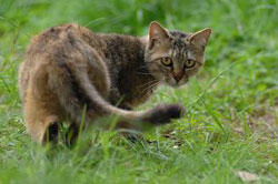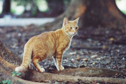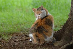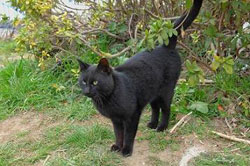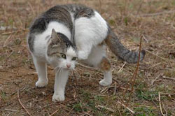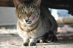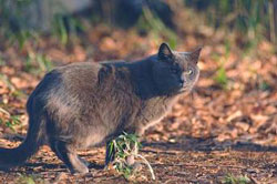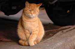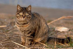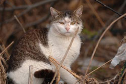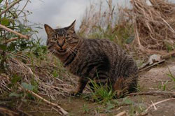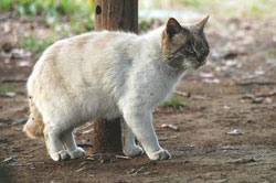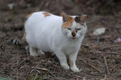 付近で飼われていた猫だが充分に面倒をみてもらっていなかった様子で移動してきた。 |