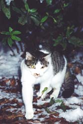 04年12月24日の雪の降る日に捨てられ、廃車の下に棲んでいた小柄で賢い猫。 |