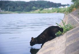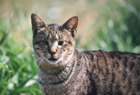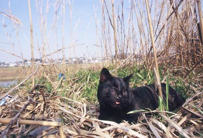 | スー(♂・4歳)は2000年春に4匹の兄弟として多摩川で生まれ育ちました。4匹の子猫はすべて鼻気菅炎に感染し2匹が失明してしまいました。しかし失明まで至らなかった2匹のほうが死に絶え、目の不自由な2匹が生き残りました。スーはそのうちの1匹で、もう1匹はラン(♀)と名づけられました。 | ||||||||||||||||||||||||||