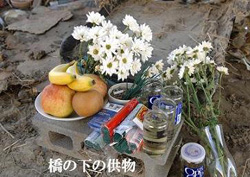 07年9月6日、関東地方に直撃した台風9号の影響により、河川が氾濫して河川敷では夕方から夜にかけて増水した濁流が徐々に水かさを増していった。翌7日、午前には水位が約8m 上がり、河川敷のあらゆる物が次々と泥水の中に姿を消していく。ミエコ達と暮らす Tさんは避難する間もなく一気に小屋ごと流されていった。