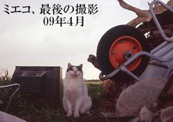 「猫を連れたおじさんは流される小屋の上に乗って助けを求めていたが、バランスを崩して水没し、そのまま姿が見えなくなった。」 (消防隊員の話) 幸いにもクロ(♀・5歳)は難を逃れたが、ミエコとシロは Tさんといっしょに濁流に消え、再び戻ってくることはなかった。その後のクロは被災当時に隣の小屋に住んでいた Aさんによって引き継いで飼われていたが、10年8月に8歳で病死。