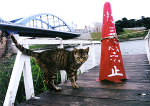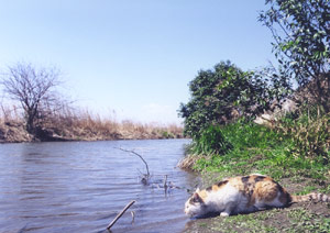 3年前に捨てられてここに棲みついている。多摩川の水を飲んでノドを潤す。(右)