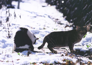 | 冬の貴重な陽だまりで体を温める。近くに手厚く面倒を見てくれる人がいて健康に育っている。 |
