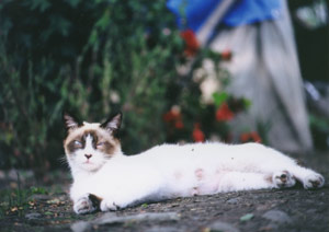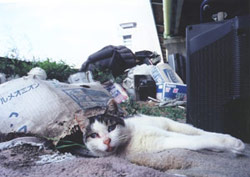| 多摩橋付近に住むシロは慢性の栄養失調。近くの廃屋で目立たぬよう子育て中。 |